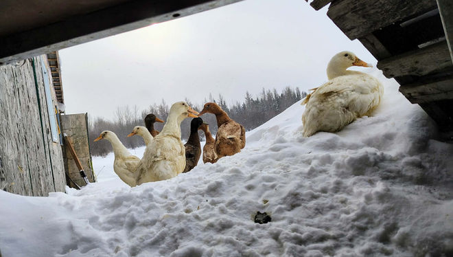 Des poules pondeuses, canards et poulets de chair